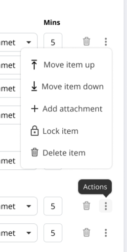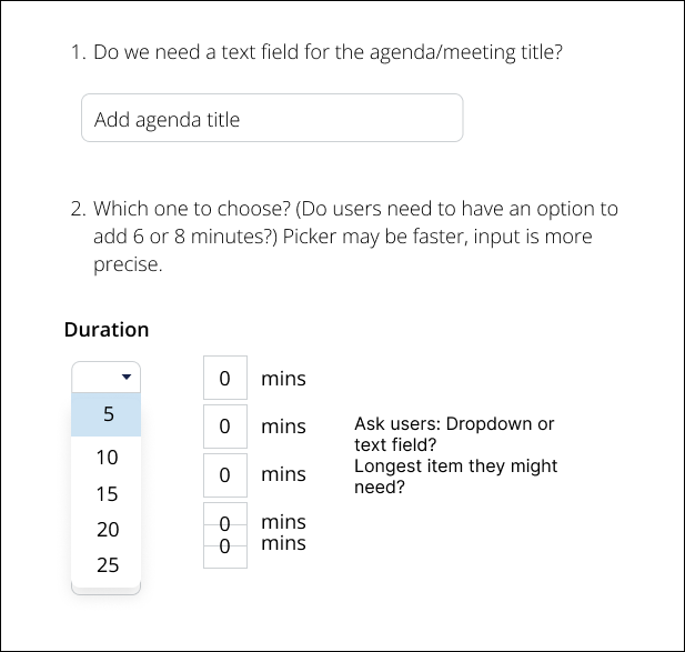 The best way to reorder items in the agenda builder tool was a major source of disagreement within the previous design team. Ideas for how to handle this problem included: