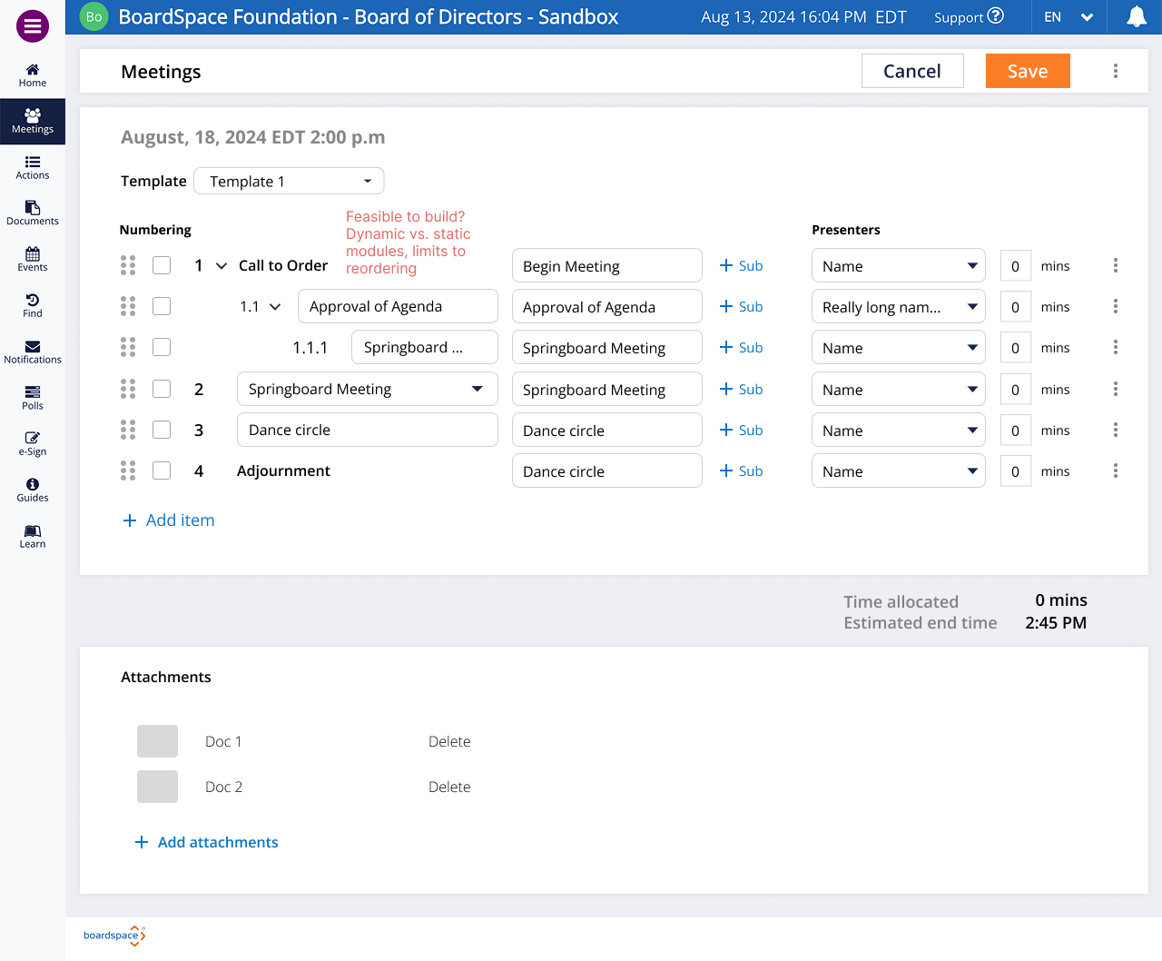 Boardspace has a wide suite of features, but our four-person student design team was tasked with redesigning the Agenda Builder Tool.