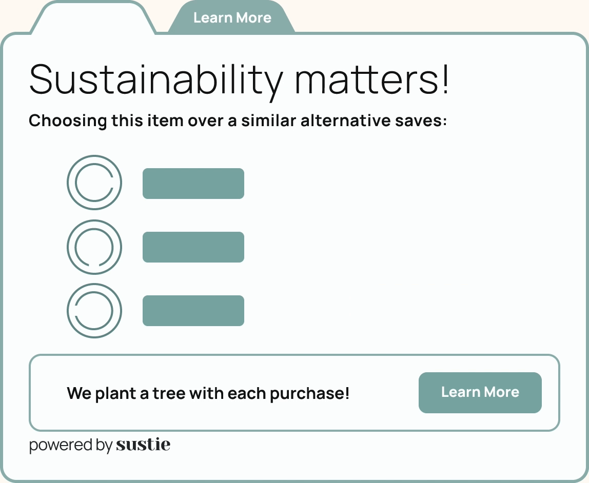 Design an interface that displays Sustie’s sustainability metrics on a given e-commerce product page, as well as options to offset carbon emissions via Sustie’s partner organizations. Design additional interfaces for post-purchase follow up if time allows.